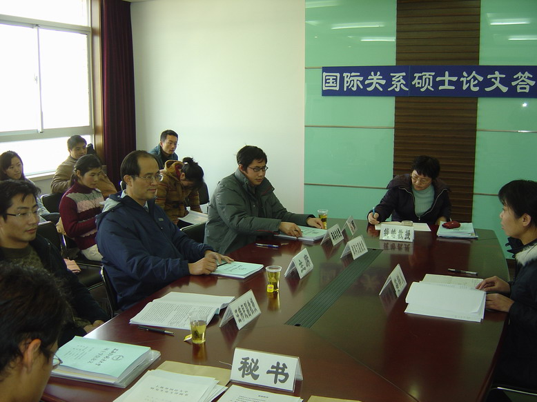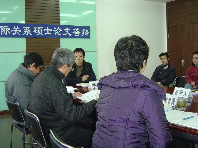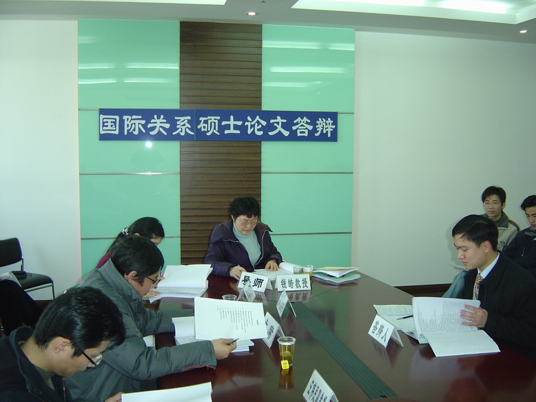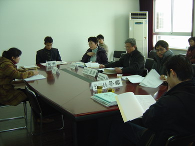 2006年12月29日,我院毕业研究生论文答辩工作首日答辩在科研楼604会议室顺利展开。答辩分上午和下午两个阶段,参加答辩的有我院2004级研究生张笑芳、荣正通、张爱华和连艳辉四位同学,答辩委员会成员老师有:我院胡礼忠教授、汪宁教授、钱皓教授、汪伟民副教授、谭再文副教授以及同济大学的邱美容副教授,我院三个年级的部分研究生也旁听了今天的答辩会议。(博风)
