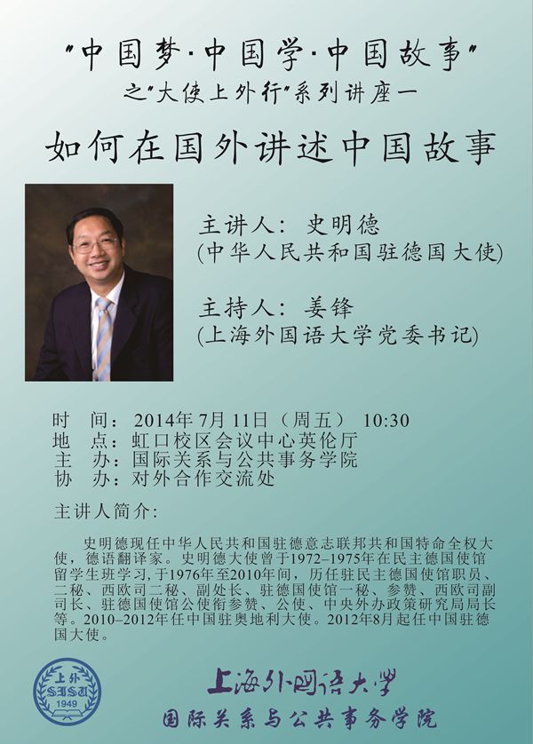 “中国梦•中国学•中国故事”之“大使上外行”系列讲座一【07月11日】