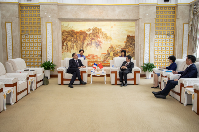 会见伊始,李岩松对若贝尔教授一行的到来表示热烈欢迎。他向法方介绍了上海外国语大学的历史沿革、学科布局、师资力量、特色优势以及未来的发展愿景,着重指出两校在人才培养、交叉学科、学术团体等诸多方面的契合点。他表示,此次合作协议的签署将为两校师生搭建起更为广阔、多元的国际化交流平台,他期待未来两校能在文化交流、师生互访、学术资源共享、联合科研等诸多领域取得丰硕成果。