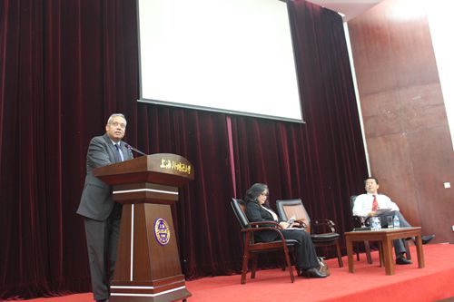 印度尼西亚共和国祝上海总领事馆总领事艾克西女士,印度共和国驻上海总领事馆总领事史耐恩先生,以及国际关系与公共事务学院的郭树勇院长受邀出席了演讲会。
