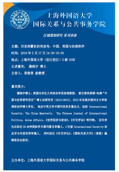 【讲座预告】国际关系与公共事务学院 区域国别研究系列讲座——对亚洲霸权的再思考:中国、美国与协商秩序