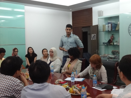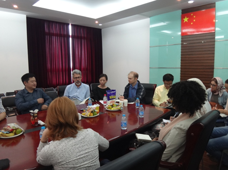 2014年9月19日中午1点,上外中国学研究所在虹口校区6号楼604会议室举行中国学全英语硕士项目师生见面会,欢迎首届2014级留学生入学。国际关系与公共事务学院院长郭树勇教授、中国学研究所所长武心波教授、中国学项目助理王联合副教授、研究生部2014级新生辅导员盛攀峰老师,以及第一学期的全体任课教师出席了本次师生见面会。见面会由中国学项目助理左品博士主持。