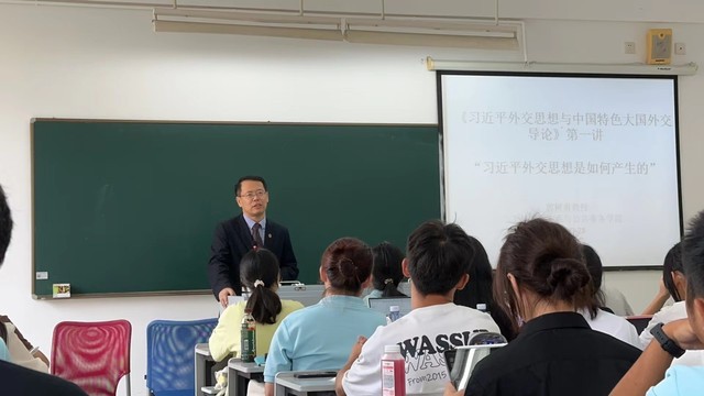 9月28日上午,由郭树勇教授讲授《导论》的第一次课。课上,授课老师阐述了在本科层次开设该课程的主要考虑与教学方式,向国际关系、国际政治、外交学等专业的一年级本科生重点讲解习近平外交思想的产生与中国特色大国外交等重要议题。